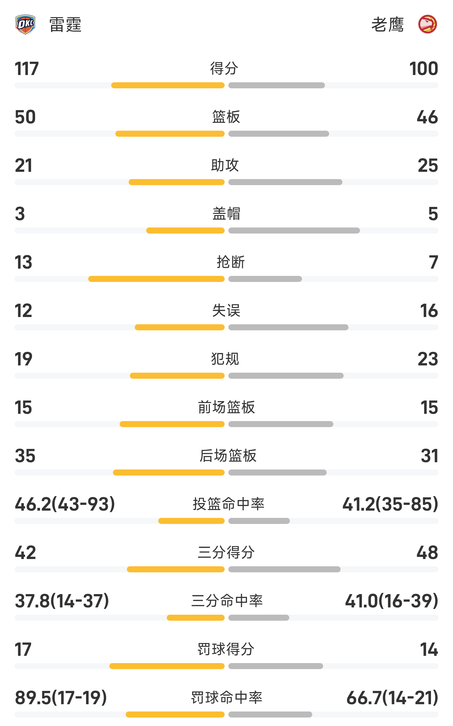 NBA战报:霍姆格伦31分12板,雷霆117-99轻取老鹰