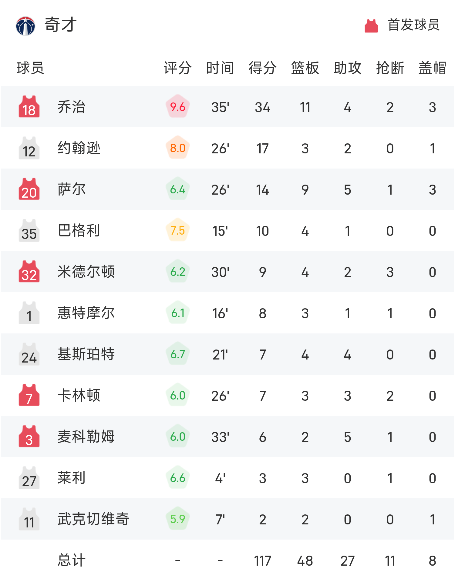 NBA战报:乔治34分11板,奇才117-107击败独行侠