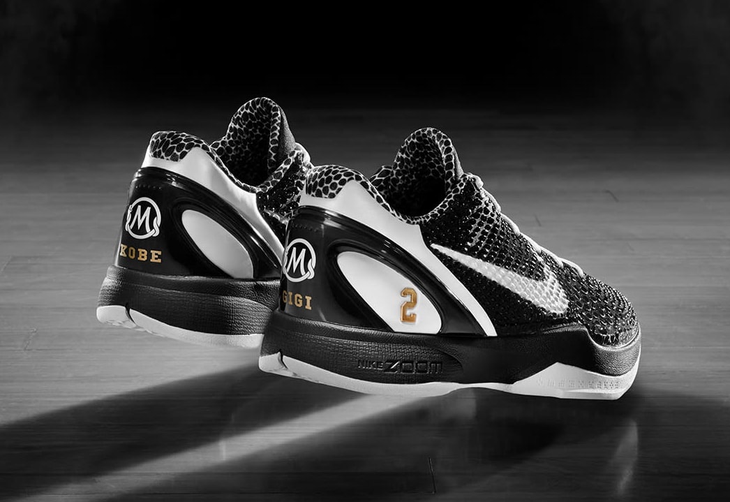 值得一提的是,这双黑白配色的科比6代是纪念科比女儿Gigi的特殊配色的版本。