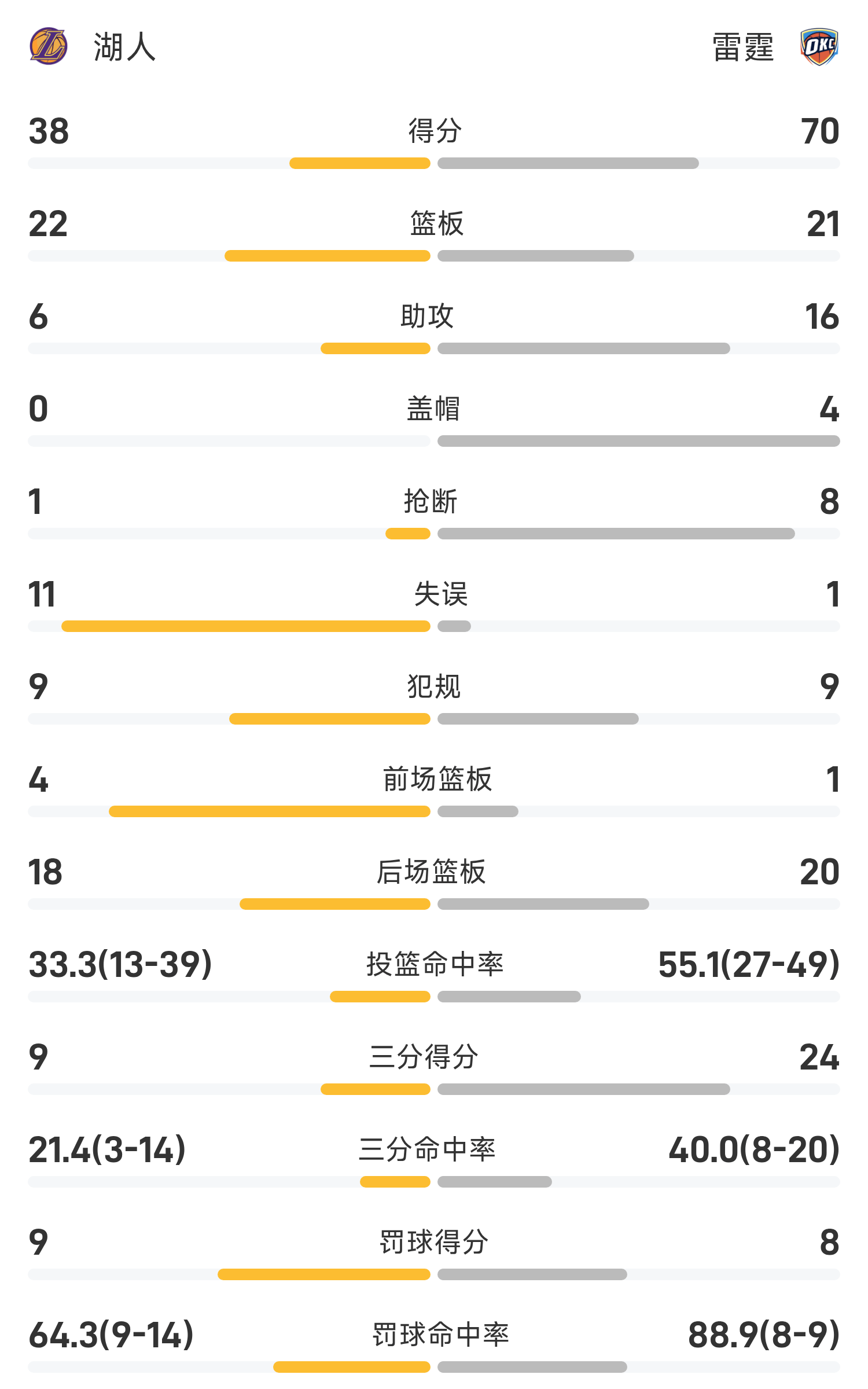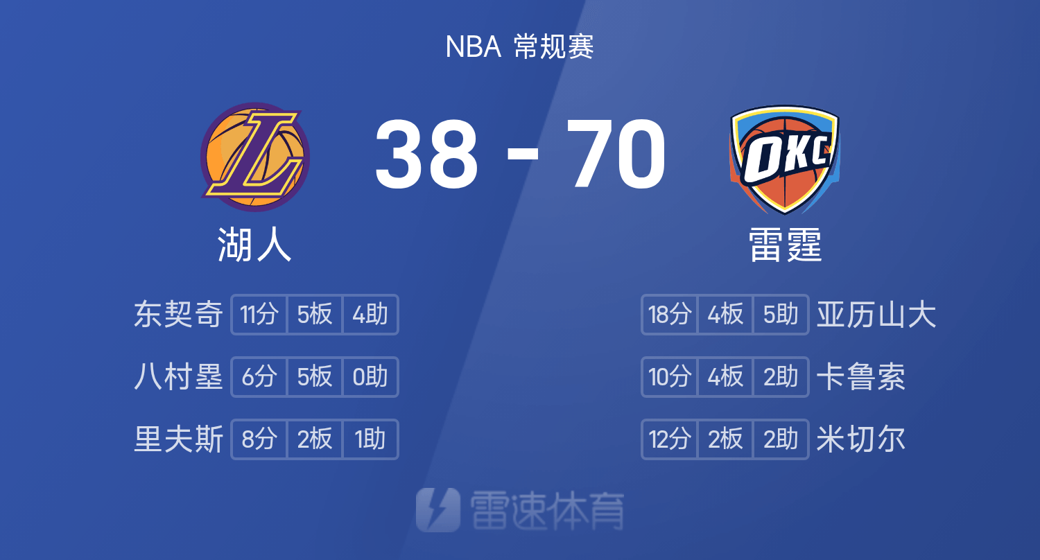 NBA半场:SGA18分,东契奇11分,雷霆70-38领跑位湖人