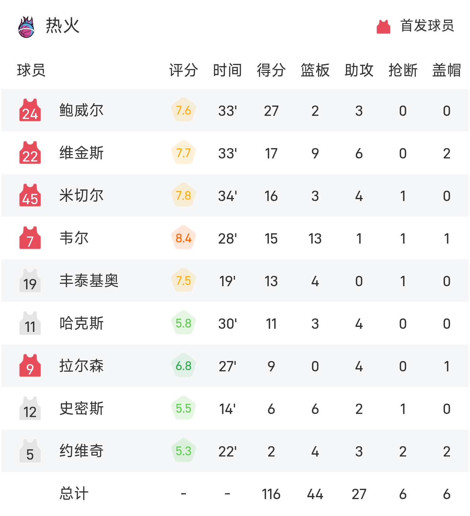 6686体育app11月13日讯 25/26赛季NBA 常规赛,热火对阵骑士。双方全场战罢,热火116-130不敌骑士。阿伦砍下全场最高的30分10板2助,率领骑士胜利取胜。