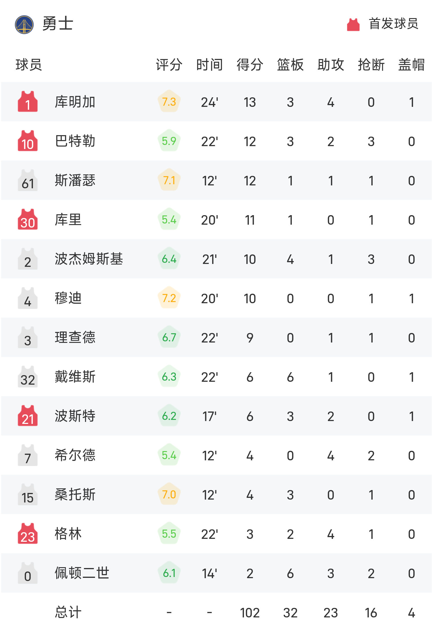 6686体育app11月12日讯 25/26赛季NBA 常规赛,雷霆对阵勇士。双方全场战罢,雷霆124-102战胜勇士。亚历山大砍下全场最高的28分5板11助,率领雷霆胜利取胜。