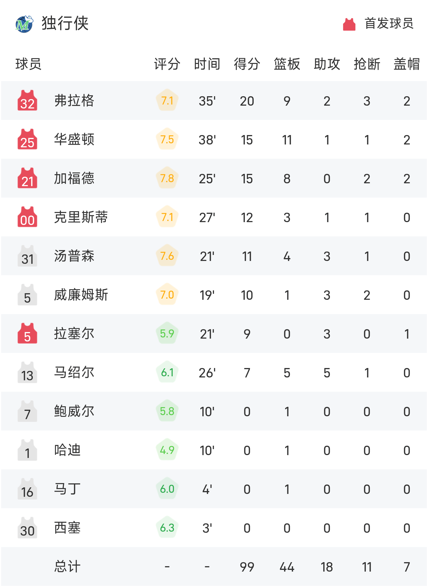 双方全场战罢,独行侠99-101不敌鹈鹕。