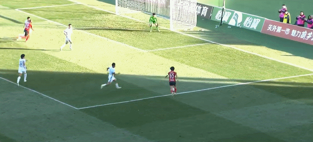 8’邦本宜裕三秒区外带球摆脱守卫起左脚外围射门,李冠希将球挡出