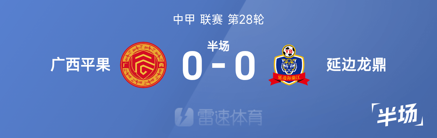 6686体育app10月26日讯 25赛季中甲联赛事第28轮,广西平果迎战延边龙鼎。半场战罢,双方赛果分暂为广西平果0-0延边龙鼎。