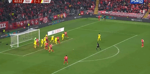 63’差之毫厘!瑞士边线球主罚到三秒区内,连续形成威胁攻势