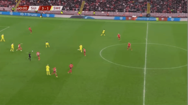 瑞士首发阵容:1-科贝尔、13-罗德里格斯(70’2-穆海姆)、3-威德默、4-埃尔维迪、5-阿坎吉、10-扎卡、20-阿比切尔、17-巴尔加斯(85’16-法斯纳赫特)、22-里德尔(70’15-索乌)、11-恩多耶(90’14-泽齐利)、7-恩博洛(85’9-曼赞比)