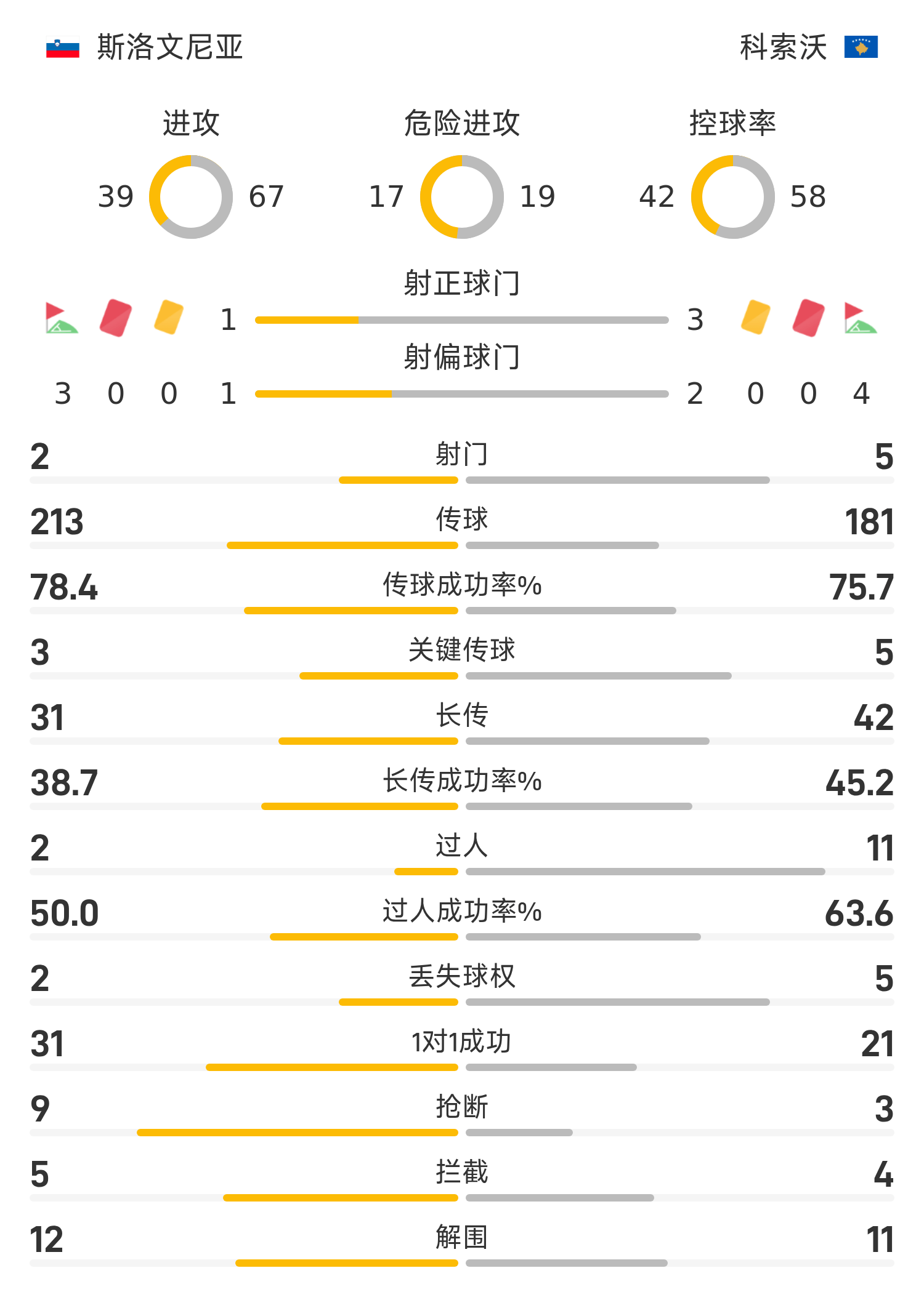 斯洛文尼亚首发阵容:1-奥布拉克、23-布雷卡洛、6-比约尔、21-德鲁库西奇、13-詹扎、5-斯坦科维奇、10-埃尔斯尼克、2-卡尼凯尼克、19-霍尔瓦特、9-斯波拉尔、18-维波特尼克