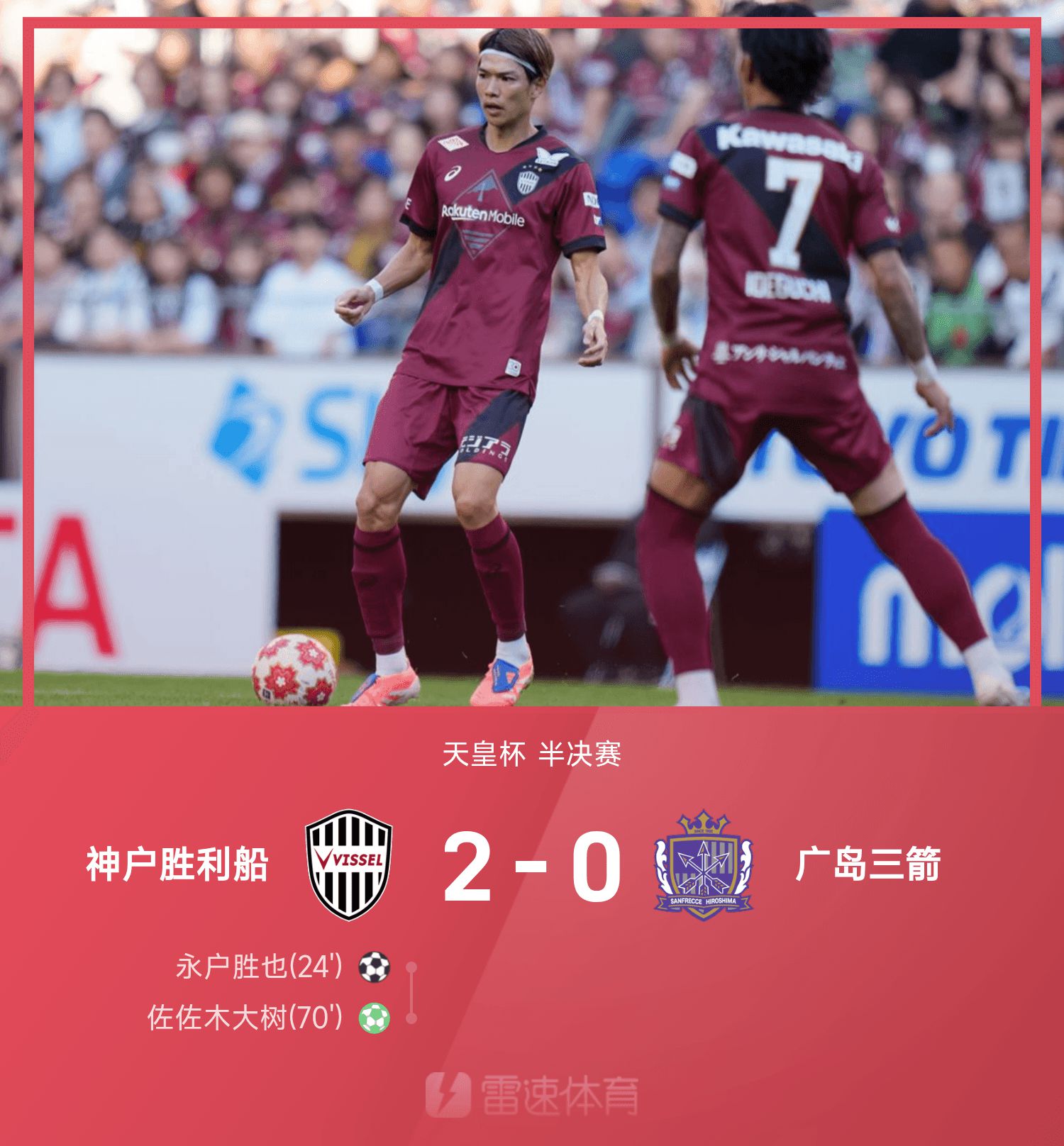 6686体育app11月16日讯 25赛季天皇杯半总决赛,神户胜出局船2-0战胜广岛三箭。上半场,永户胜也外围射门破门协助神户首开纪录。易边再战,大迫勇也主罚十二码被扑出,但因广岛三箭守门员提前移动重罚,最终佐佐木大树点射命中,协助神户胜出局船锁定胜局,并连续两年打入天皇杯总决赛。
