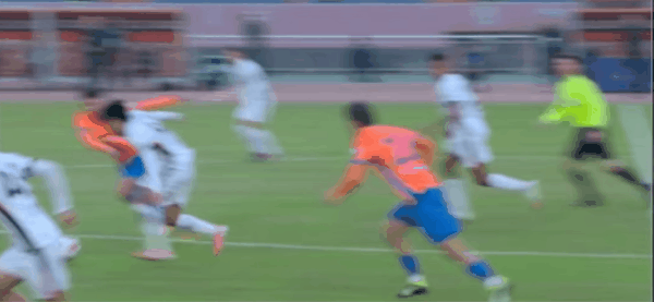 35’李新翔三秒区内摆脱后卫+王大雷,被高准翼回防及时清球