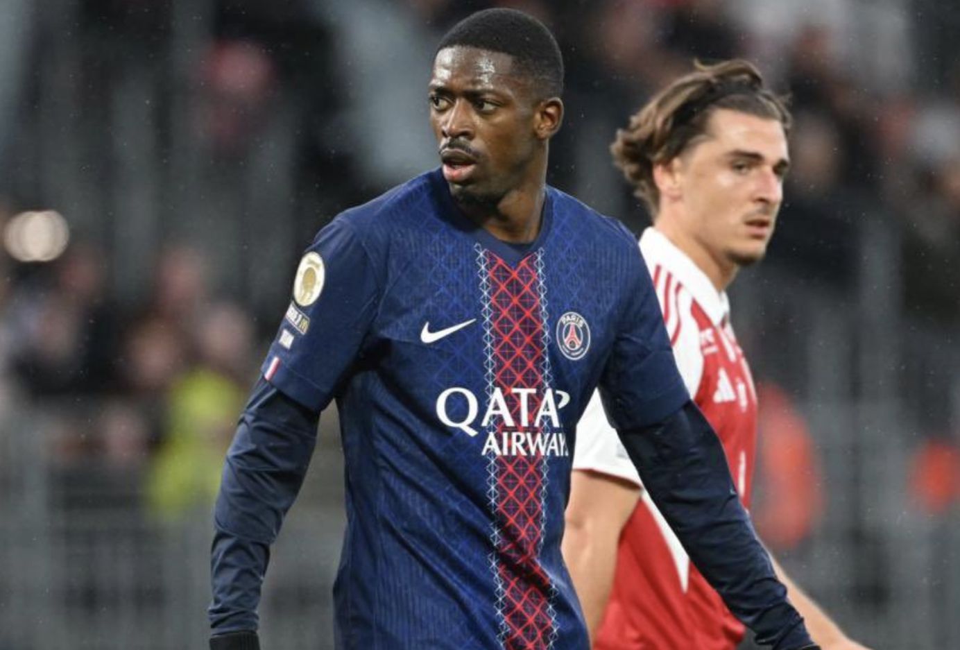记者:阿什拉夫左踝韧带受伤缺阵6-8周,登贝莱小腿肌肉受伤