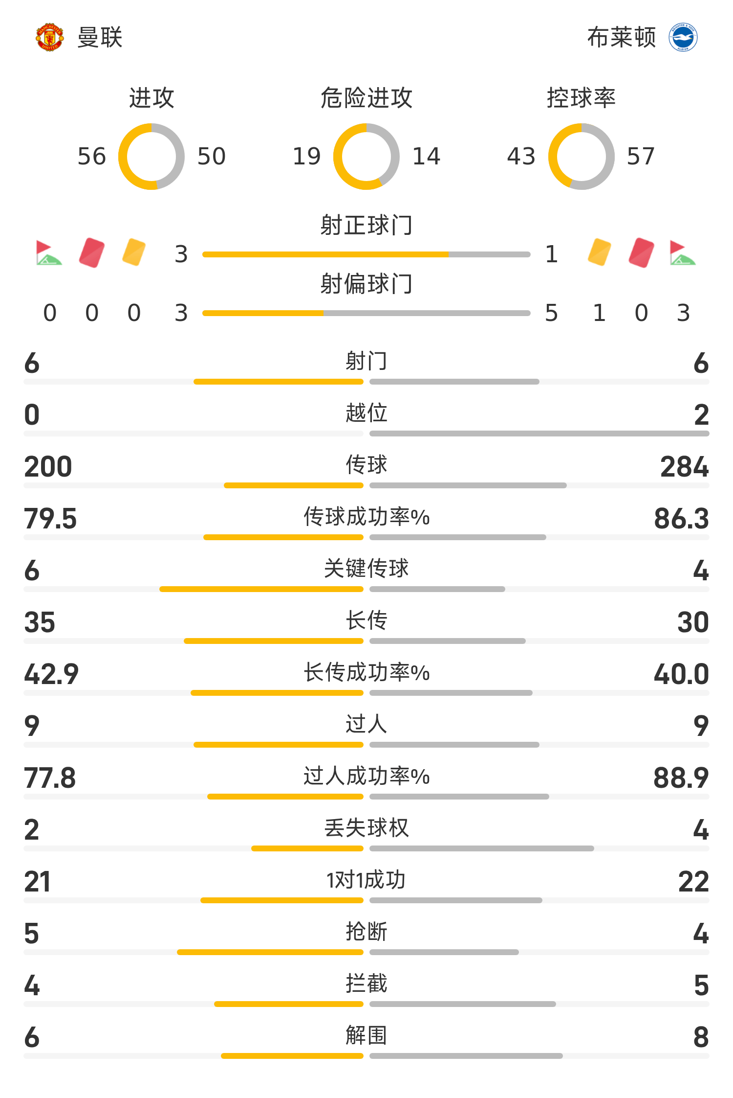 44’姆伯莫送保姆球,谢什科左脚抽射打偏,曼联仍2-0布莱顿