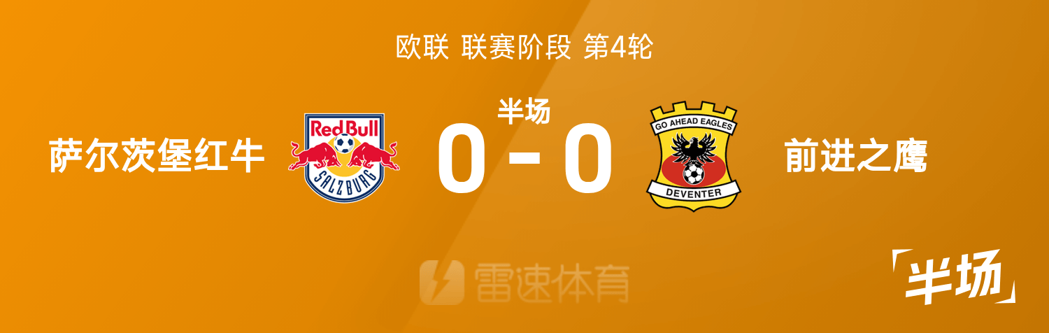 欧联半场:比绍夫爆射造险,萨尔茨堡红牛暂0-0前进之鹰